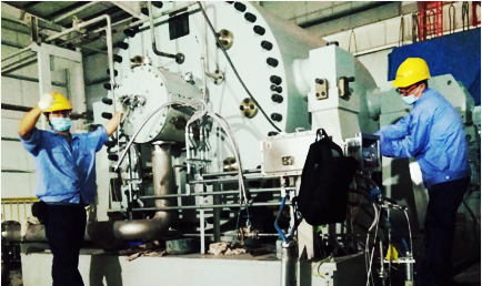 在项目现场,“秉初心,怀诚心,服务客户心连心”的理念带动了各项工作的扎实推进,机组润滑油内外循环系统调试完成、机组找正完成、主机仪表探头安装完成、变频器水冷系统调试完成······时间很快到了7月份,8套机组也已全部安装就位进入单机调试阶段。7月的沙漠地表温度超过五十度,烈日炙烤着大地,厂房里闷热得像个密不透风的罐头。非凡国际项目团队成员没有丝毫犹豫和懈怠,依旧坚守在现场。头上的汗珠不断往下滴,后背也湿了一大片,很快,每个人的后背上就出现了一幅“地图”。从清晨一直到晚上,车间里总能看到非凡国际人持续奋战的身影。功夫不负有心人,8月3日,长庆油田上古天然气项目第一台冷剂压缩机组实现一次试车成功,为用户按时投料生产提供了有力保障。